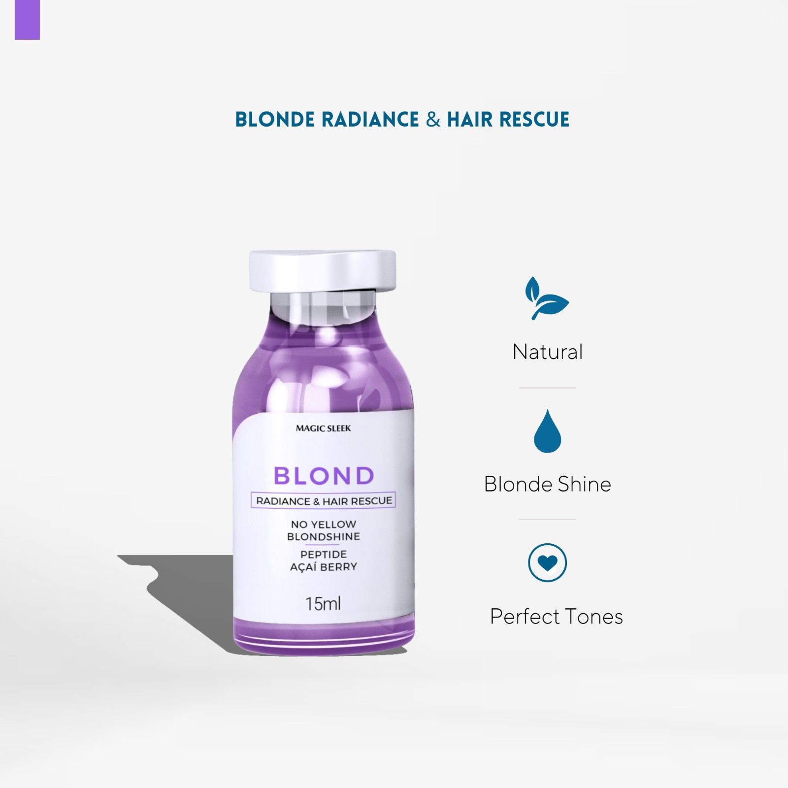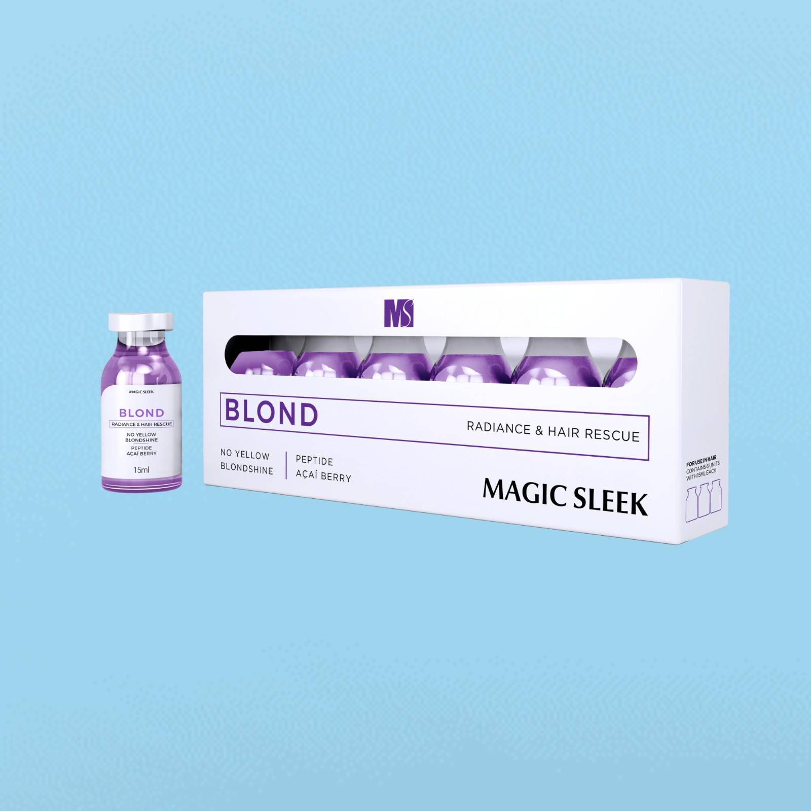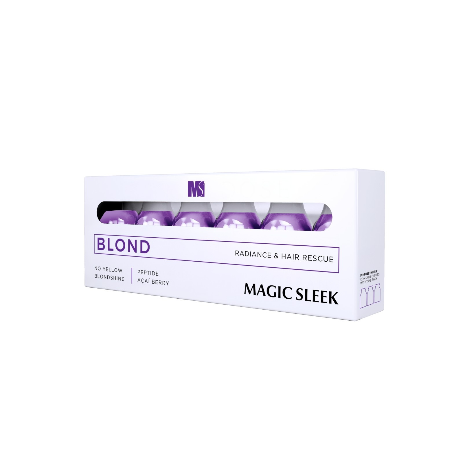Keep your blonde hair luminous, silky, and strong with Magic Sleek Blonde Radiance & Hair Rescue. This premium blonde hair treatment restores brilliance, repairs damage, and neutralizes brassiness in one simple step.