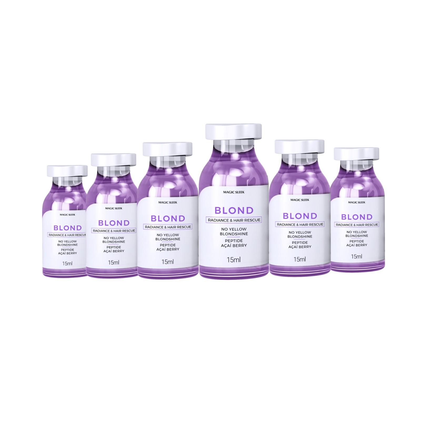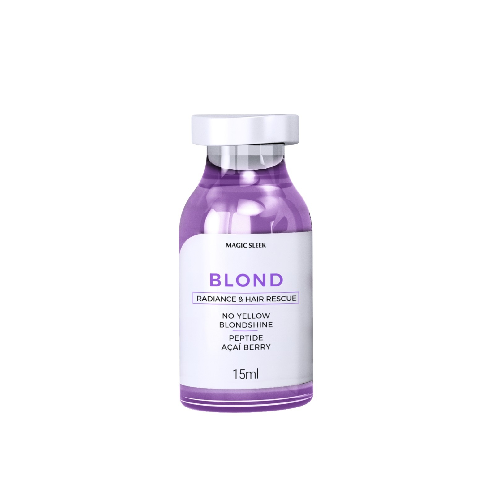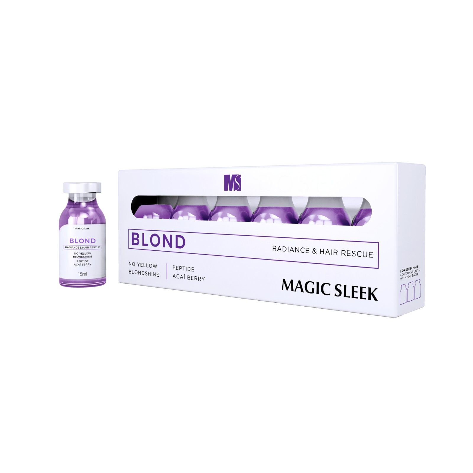 Keep your blonde hair luminous, silky, and strong with Magic Sleek Blonde Radiance & Hair Rescue. This premium blonde hair treatment restores brilliance, repairs damage, and neutralizes brassiness in one simple step.